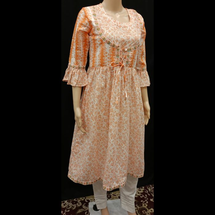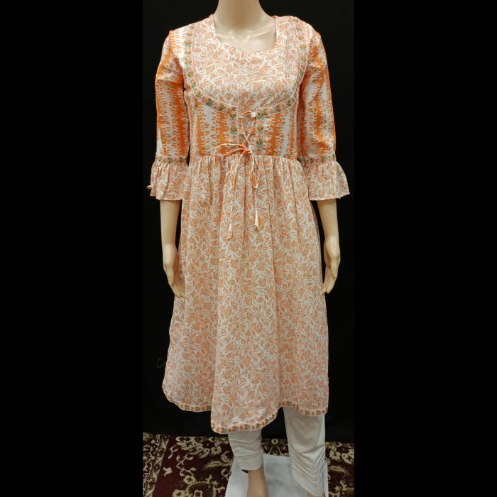 Frill Sleeves with Embellishments: Designed for comfort and style, the frill sleeves feature delicate detailing, adding a graceful touch.
