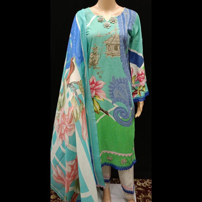 Elevate your style with this exquisitely designed Pakistani-style ready-to-wear suit, tailored to perfection for ultimate comfort and elegance. Crafted from premium-quality cotton and lawn fabric, this suit is lightweight, breathable, and ideal for festive occasions or casual outings alike.