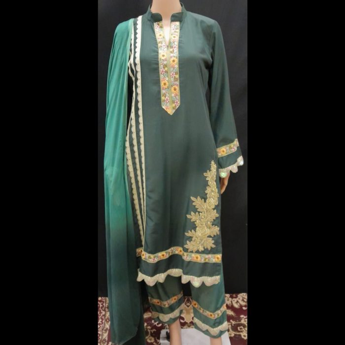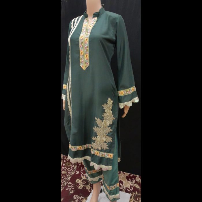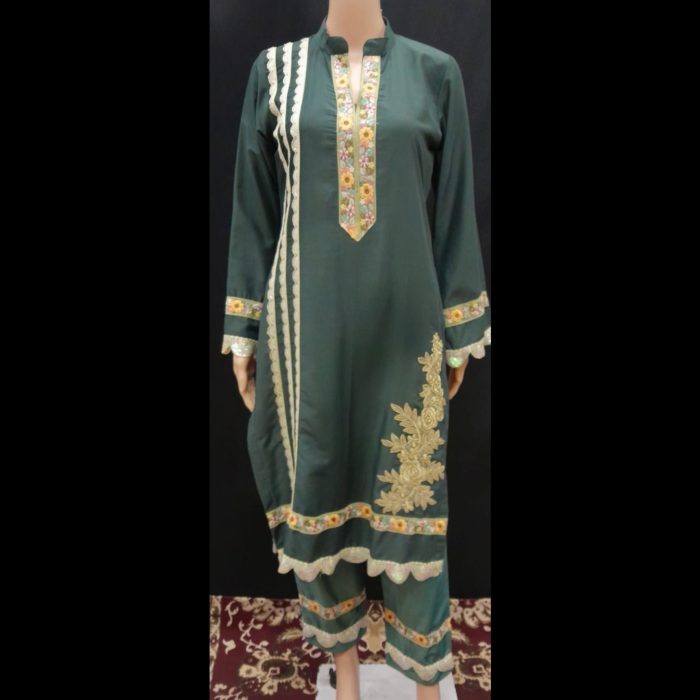 Be the first to review “Dark Green Embroidered Designer Suit 40” Cancel reply