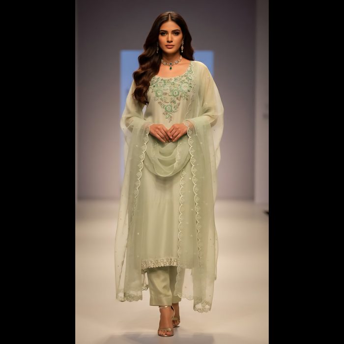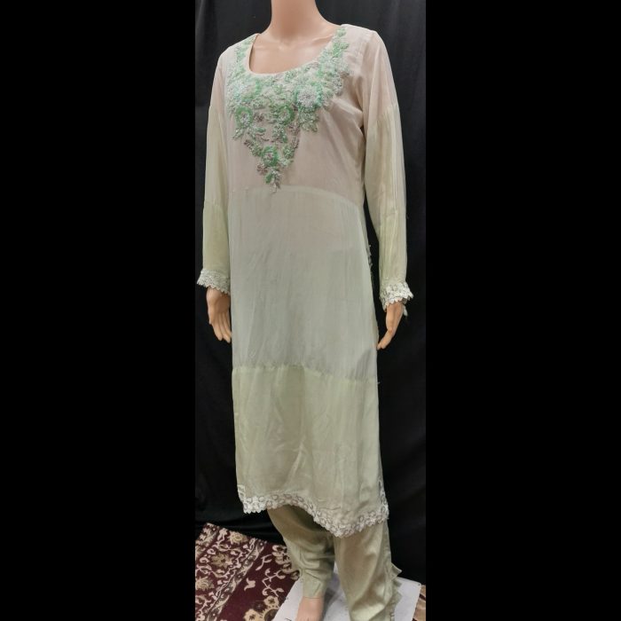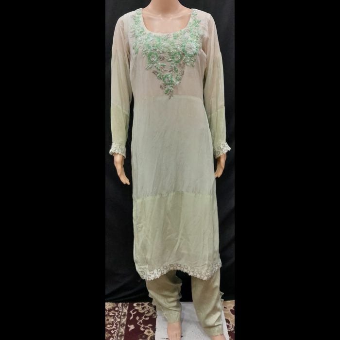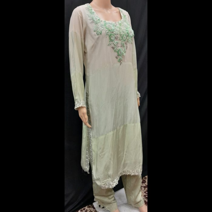 Be the first to review “Green Shaded Embroidered Handwork Patch Designer Suit 44” Cancel reply