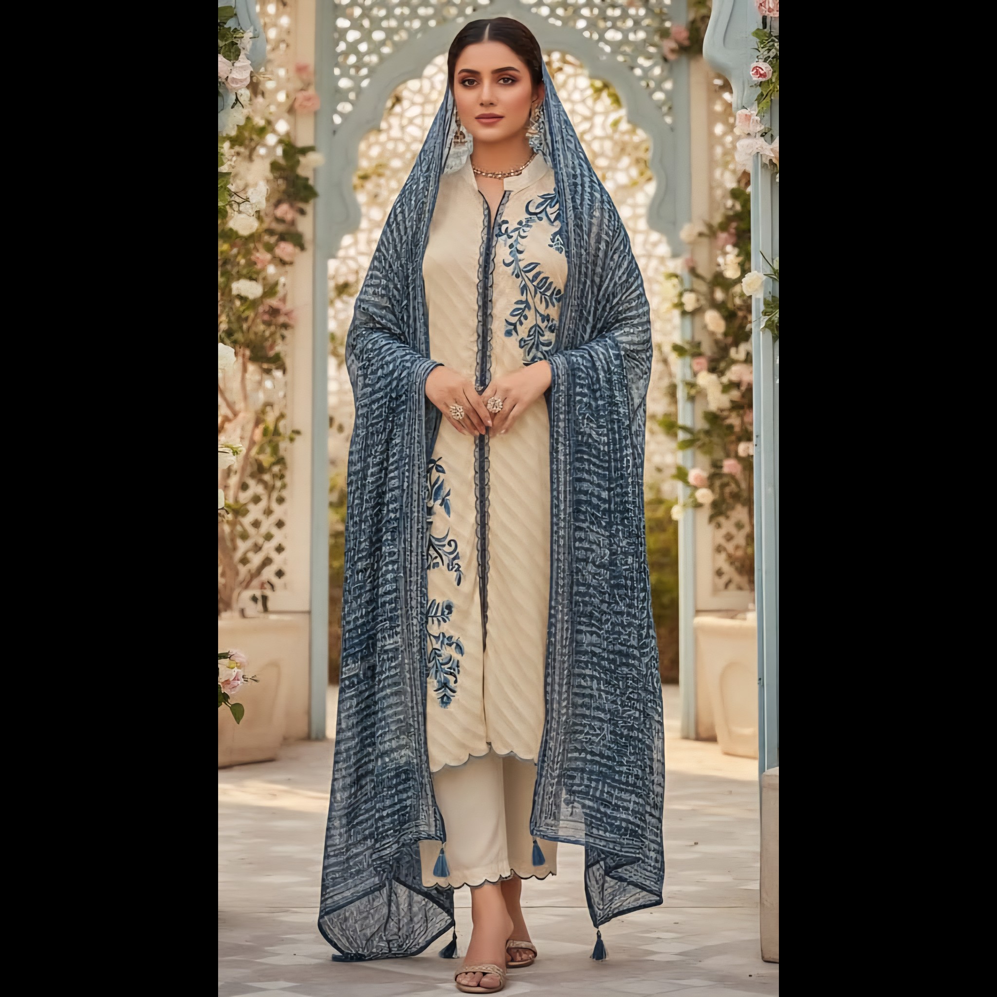 Dupatta: The set is completed with dupatta, adorned with subtle embroidered patterns, offering a cohesive and elegant finish to the ensemble.