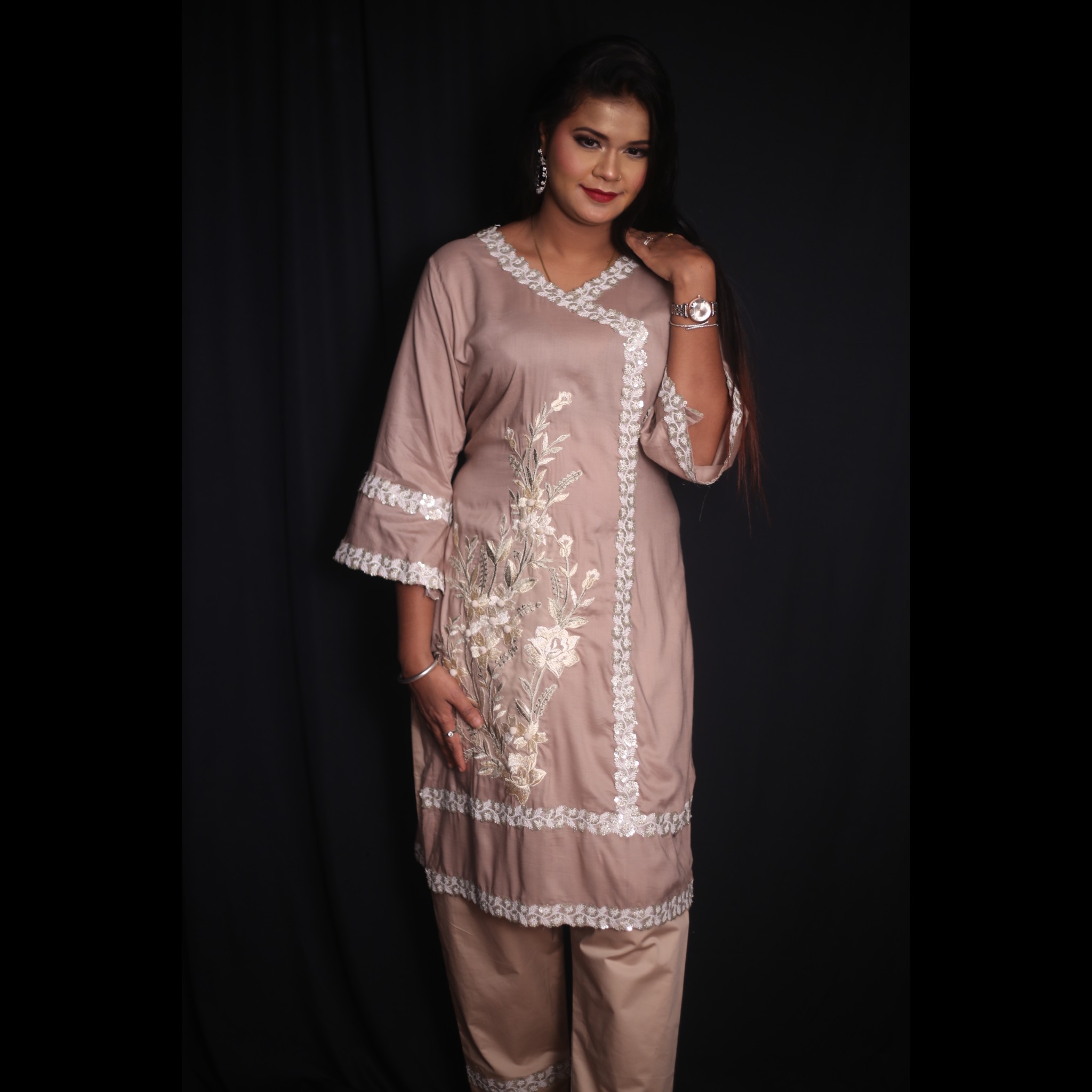 Be the first to review “Light Brown Designer Top With Pant And Dupatta 44” Cancel reply