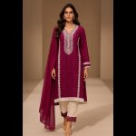 Magenta And Off-white Embroidered Pakistani Style Designer Suit 50