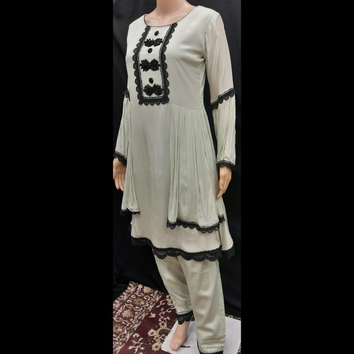 What sets these suits apart is the exquisite detailing. Each piece is adorned with a rich blend of embellished laces, intricate embroidery, and tasteful patchwork, combining traditional artistry with modern elegance. The designs are carefully curated to reflect the grace and charm of ethnic wear, enhanced with a contemporary touch that suits the modern woman.