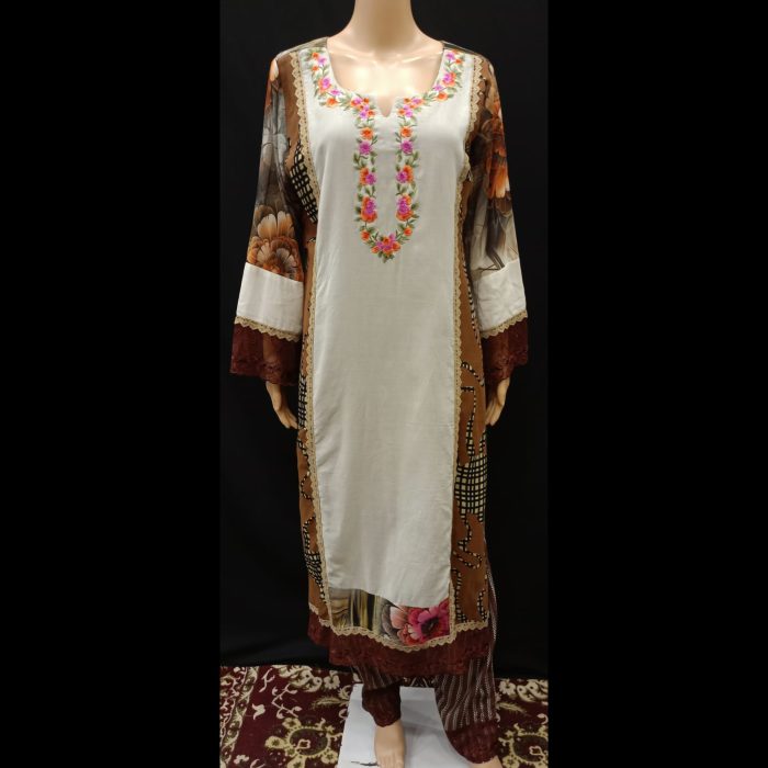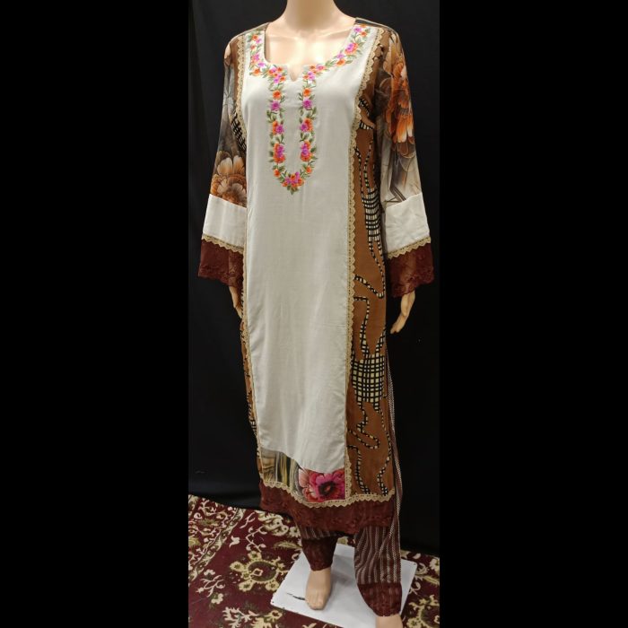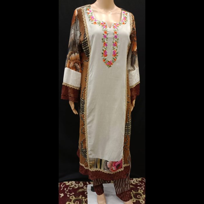 Be the first to review “White And Brown Top With Pant And Dupatta 44” Cancel reply