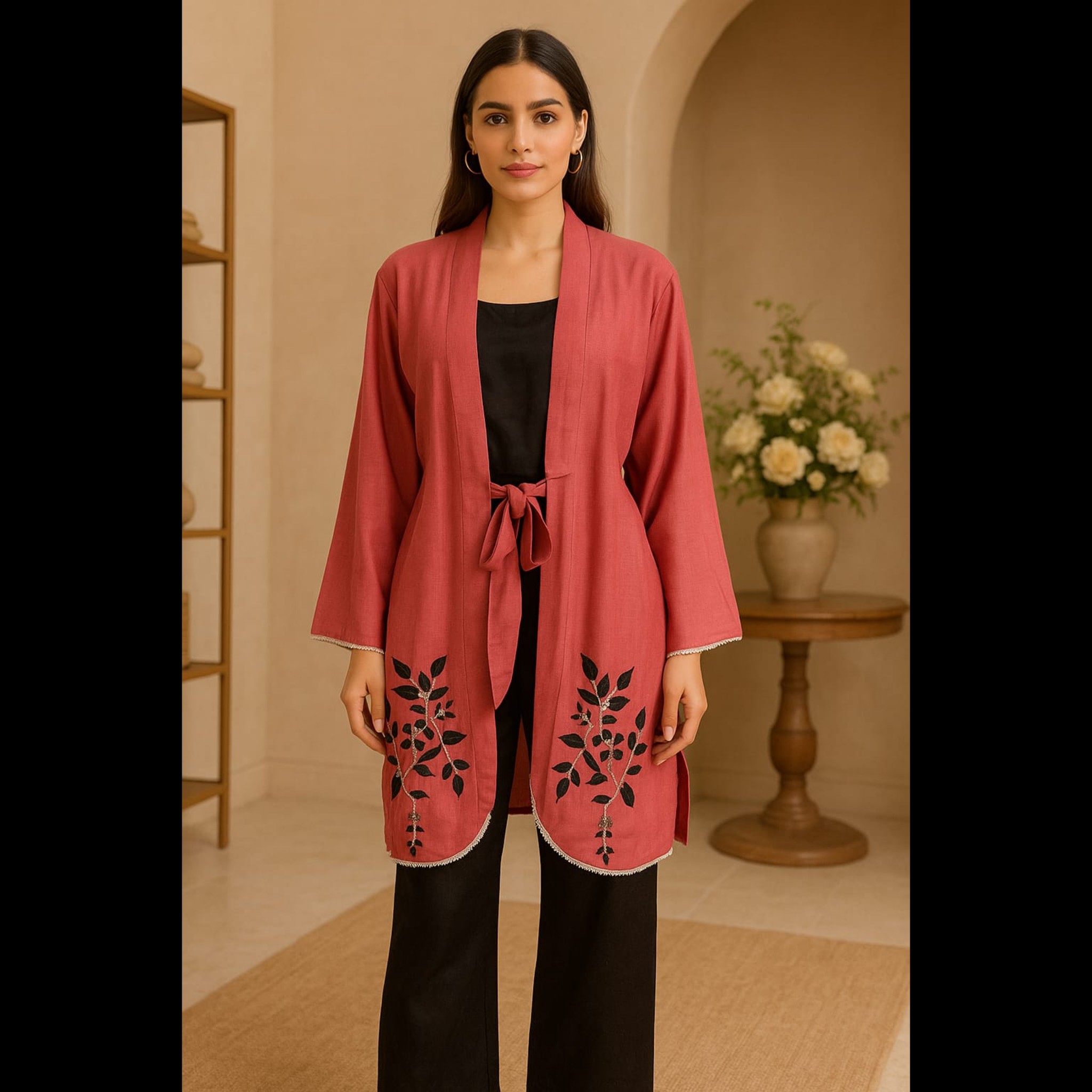 Be the first to review “Handwork Co-ord Set Red Indowestern Jacket Style With Black Pant 44” Cancel reply