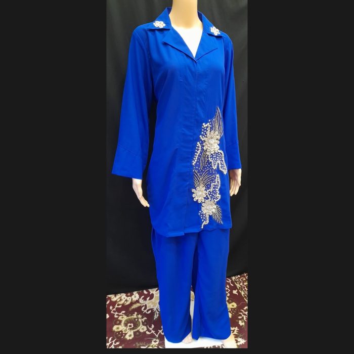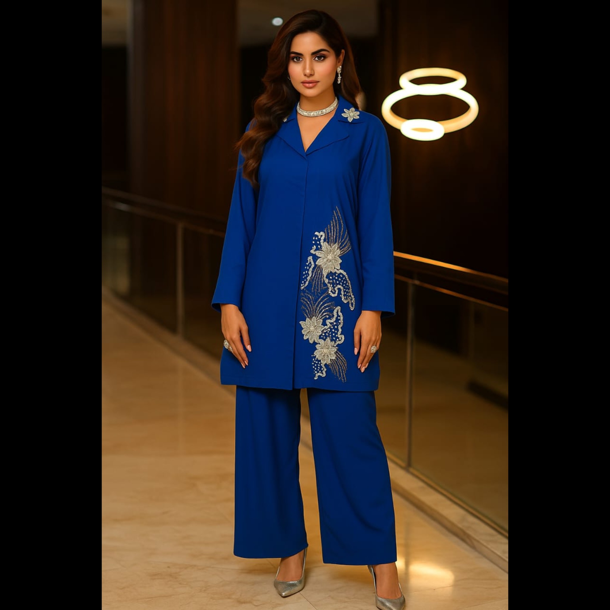 Elevate your style with the Hand Embroidered Co-ord Set, a flawless blend of elegance and contemporary charm. This stunning set features a rich Trypan Blue hue that exudes femininity and grace. Intricately embroidered detailing adorns the fabric, adding a touch of artistry and sophistication to the ensemble. Designed for both comfort and style, the co-ord set offers a modern silhouette that’s perfect for any occasion, from casual outings to festive gatherings. The luxurious fabric drapes beautifully, making this outfit a must-have for those looking to make a statement while staying effortlessly chic.