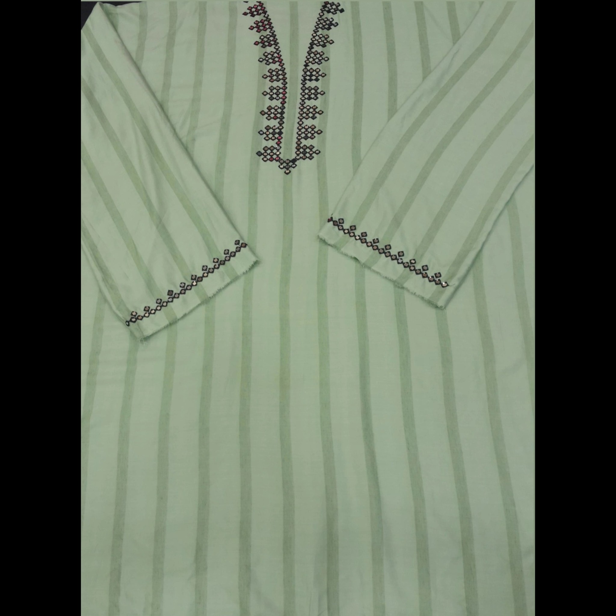 Light Green Mirror-Work Semi-Stiched Kurti ,can be made upto 12 XL