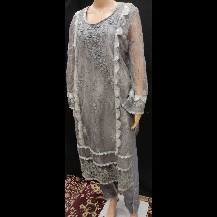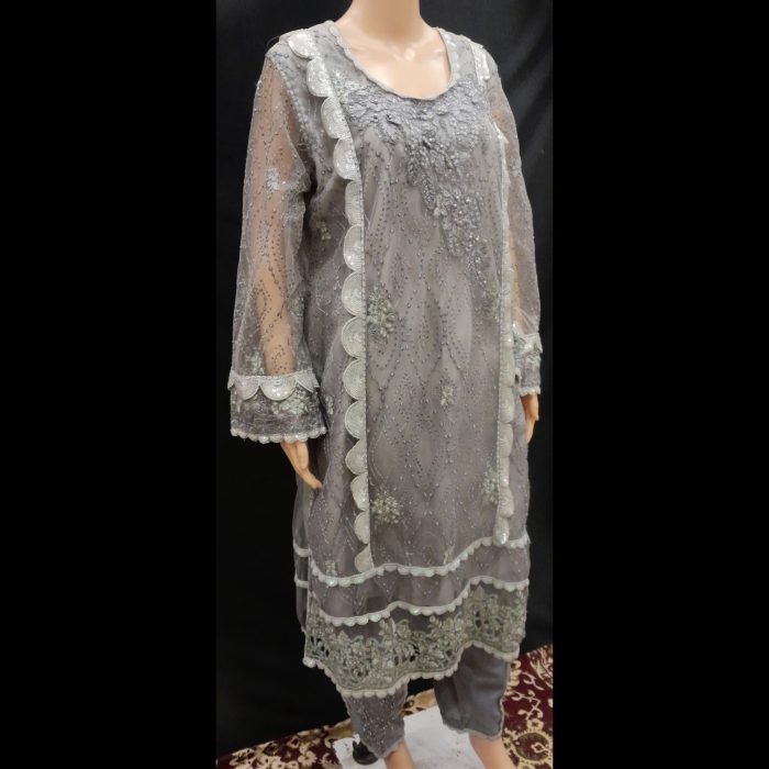 - Colour: A sophisticated grey base adorned with intricate embroidery, showcasing floral and geometric patterns that enhance the outfit’s charm.